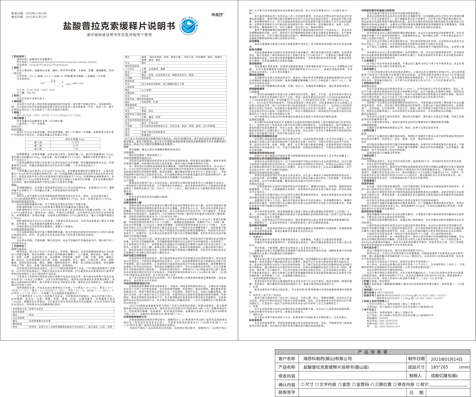 【通用名】盐酸普拉克索缓释片